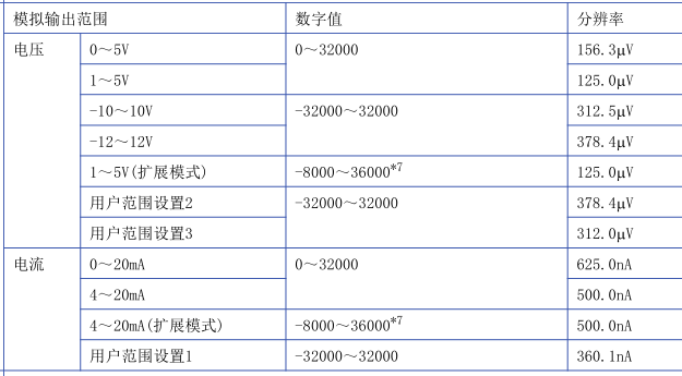 . 電流:DC0~20mA(外部負載電阻: 0至600Ω);DC0~22mA(外部負載電阻: 0~500Ω)