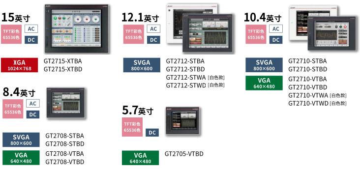 . GT2710-VTWA:10.4寸VGA,TFT彩色 65536色,白色面板,AC電源;