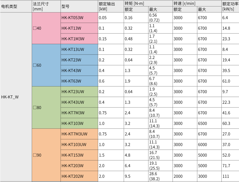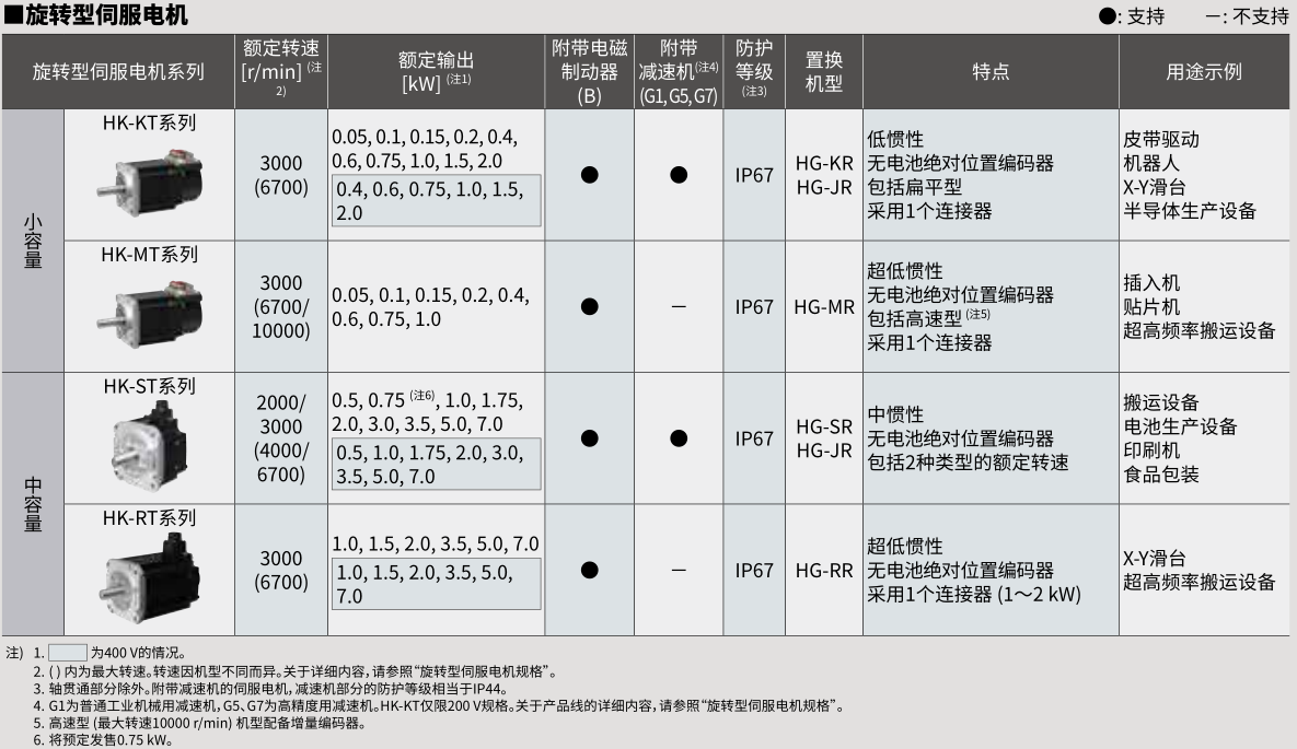 相較HG-KR系列(支持MR-J4)的5機(jī)型,HK-KT系列將產(chǎn)品線擴(kuò)展到16機(jī)型,并新增7種400V級(jí)別機(jī)型。(合計(jì)23機(jī)型)小容量HK-KT系列擴(kuò)充到2kW,中容量HK-ST系列擴(kuò)充至11kW。