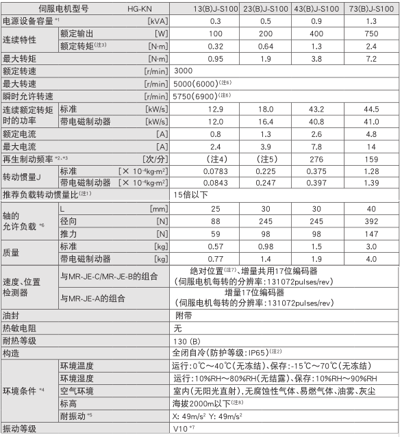 HG-KN73(B)J-S100 配套伺服放大器MR-JE-70A、MR-JE-70B、MR-JE-70C