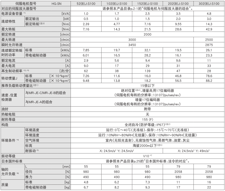 HG-SN52(B)J-S100 配套伺服放大器MR-JE-70A、MR-JE-70B、MR-JE-70C