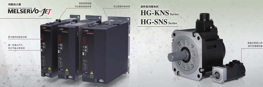 配備分辨率22位編碼器HG-KNS/HG-SNS系列配備高分辨率絕對位置編碼器(4,194,304 pulses/rev),可實現(xiàn)高精度的定位。與支持以往MR-JE系列的伺服電機(jī)外形尺寸相同,可以使用相同的電源電纜與編碼器電纜。