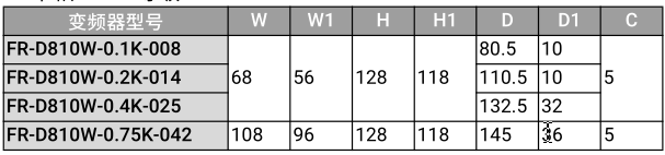 ·FR-D810W-0.1K-O08、FR-D810W-O.2K-014、FR-D810W-0.4K-025